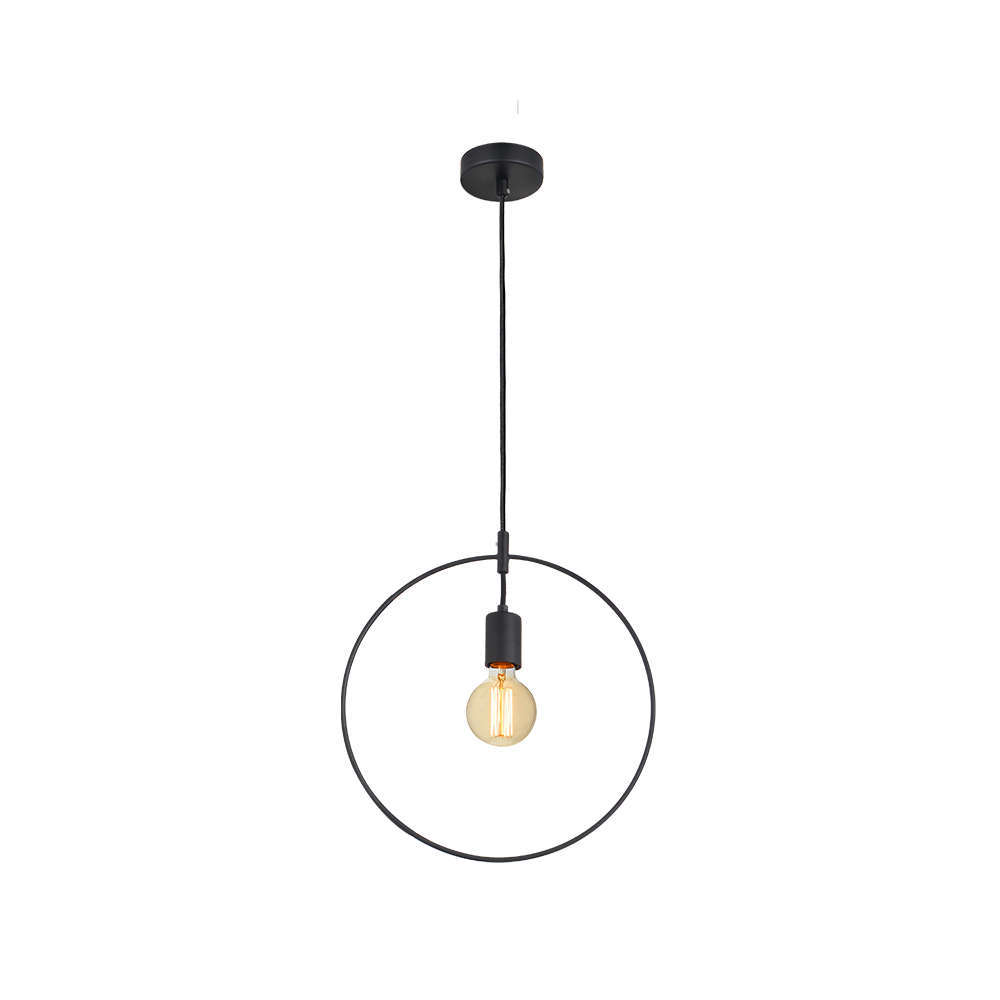 Висящо осветително тяло за таван пендел Aca Lighting TWIGGY V35181BK - висяща лампа предназначена за осветяване на всякакви жилищни или търговски помещения. Осветителното тяло се вписва перфектно във всеки модерния интериор. Използват се LED лампи с основа тип Е27. Изработен от метал боядисан в черен цвят. Размерът на пръстена е ф35см, а общата дължина с кабела, който може да се скъсява е 120см.