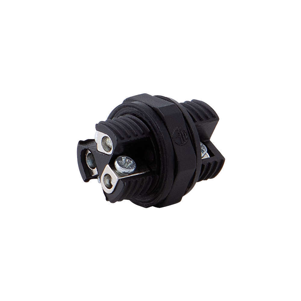 Влагозащитен конектор IP68 Ултралукс с три пина. Подходящ за присъединяване на кабели с диаметър до 7 милиметра и максимален работен ток до 10А.