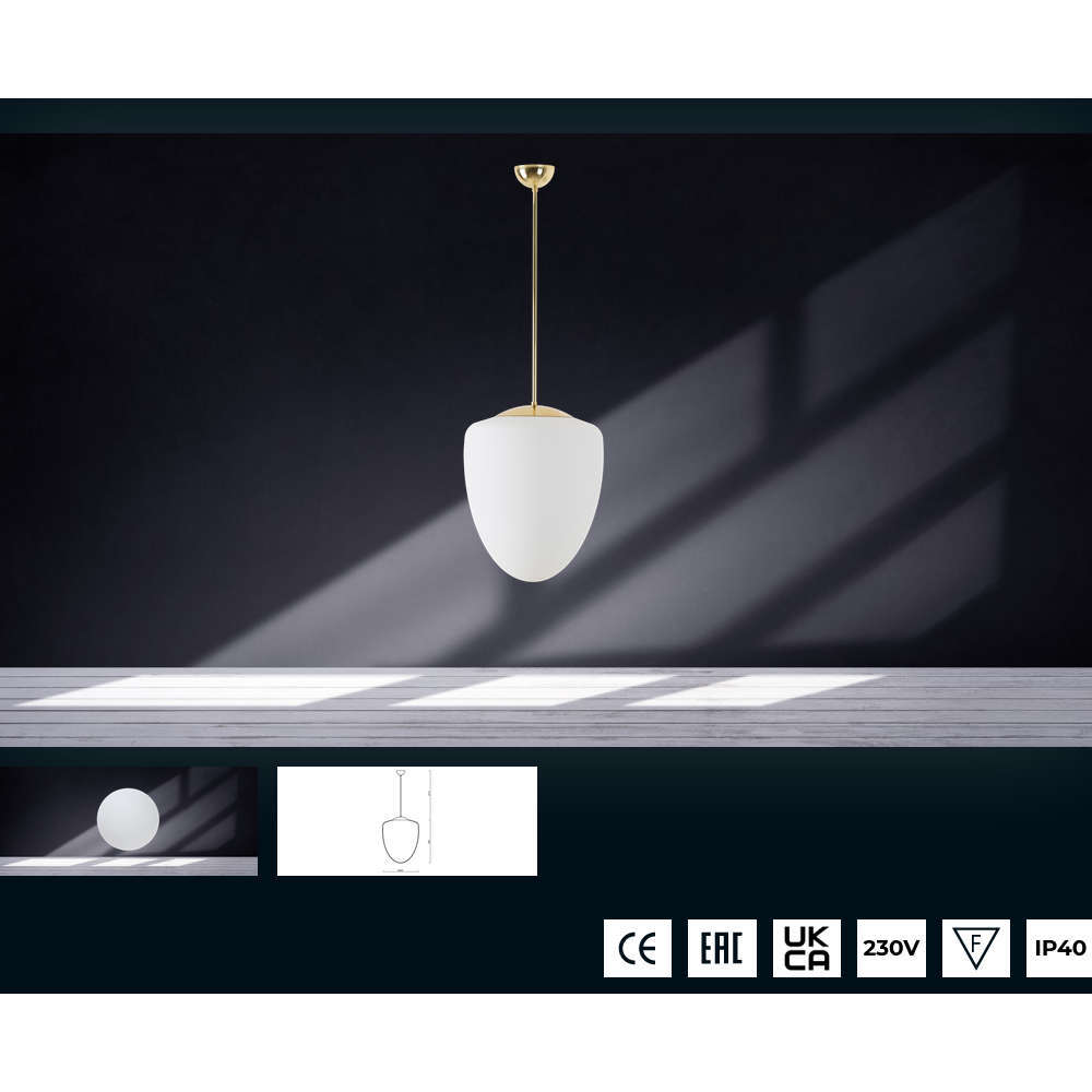 Луксозен пендел 220V, фасунгa 1xE27, IP40, метал и трислойно стъкло TRIPLEX OPAL, ф350x1430mm, цвят опал и полиран месинг