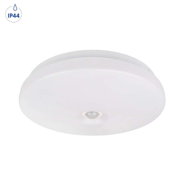Влагозащитен плафон LVT Mevo 8915 e oборудван с PIR сензор за движение за автоматично управление на осветлението. Освен това системата има сензор за здрач, който гарантира, че устройството ще се включи само в тъмната част на денонощието, след засичане на движение. Плафониерата за повърхностно монтиране разполага с две фасунги, съвместими с E27 крушки. Влагозащитен плафон LVT Mevo 8915 ще работи чудесно в коридори, стълбища, мазета.