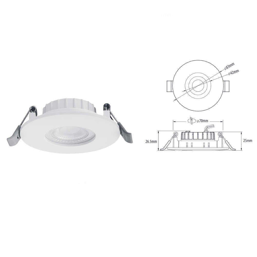 LED луна за вграждане IP44, димираща, 6W, 3000K/4000K/6500K, 60⁰, 220-240VAC