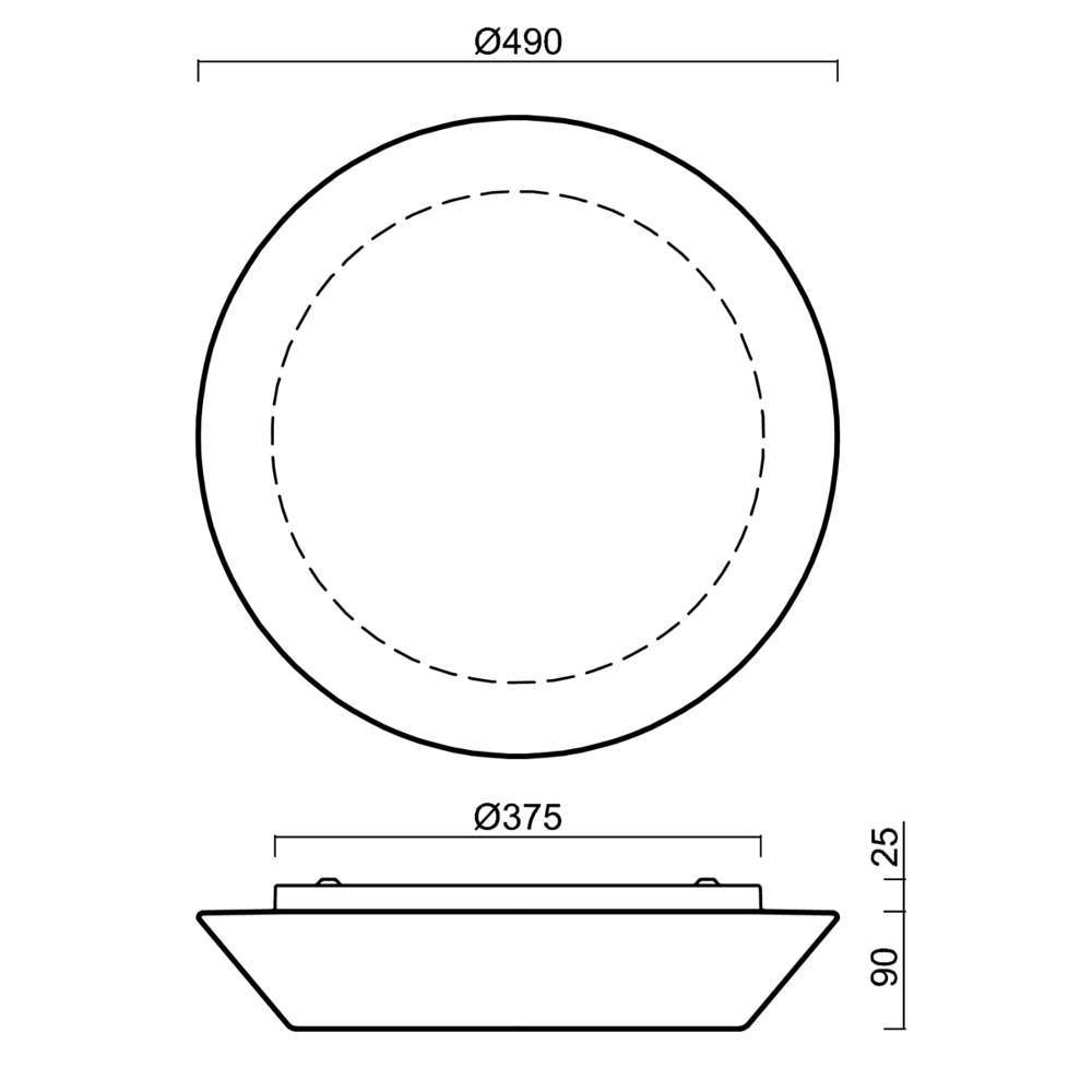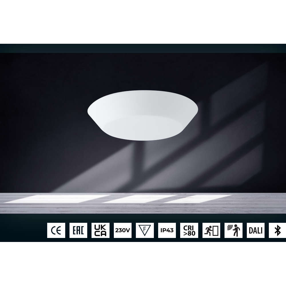 Стъклен плафон за вграден монтаж, 220V, фасунги 3xE27, IP43, метал и трислойно стъкло TRIPLEX OPAL, ф490mm