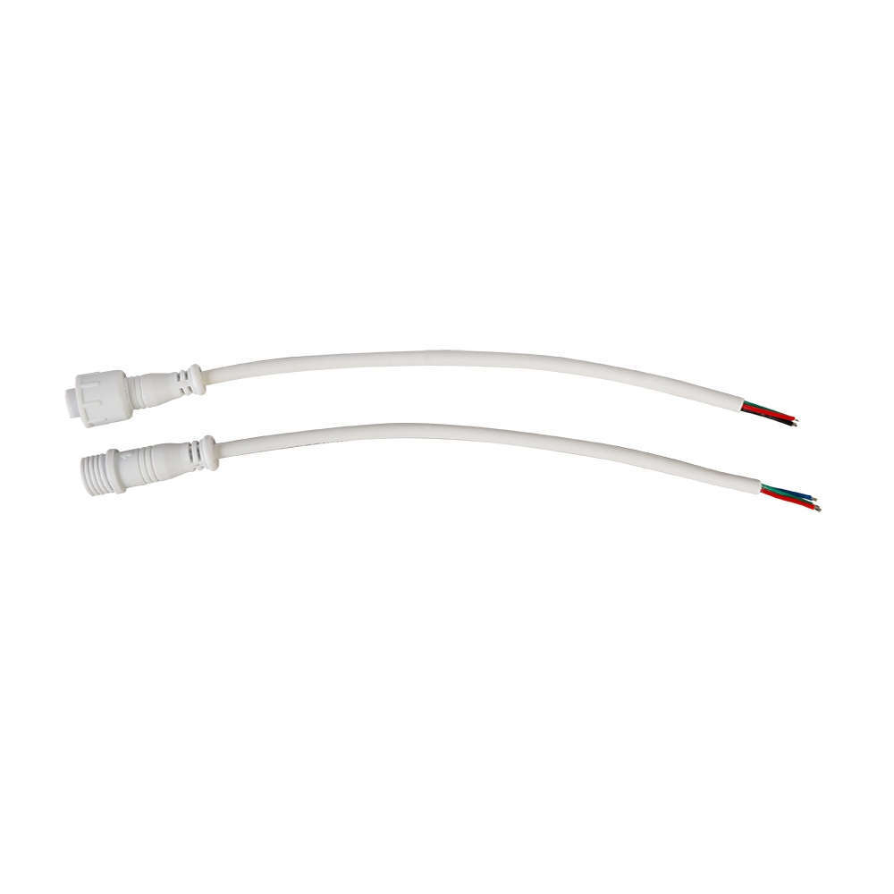 Гъвкави конектори за RGB лед ленти IP67 - четири пинов конектор предназначен за свързване на RGB лед ленти. IP67 гъвкави конектори Ultralux PKFM67RGB в комплект от мъжка и женска букса.