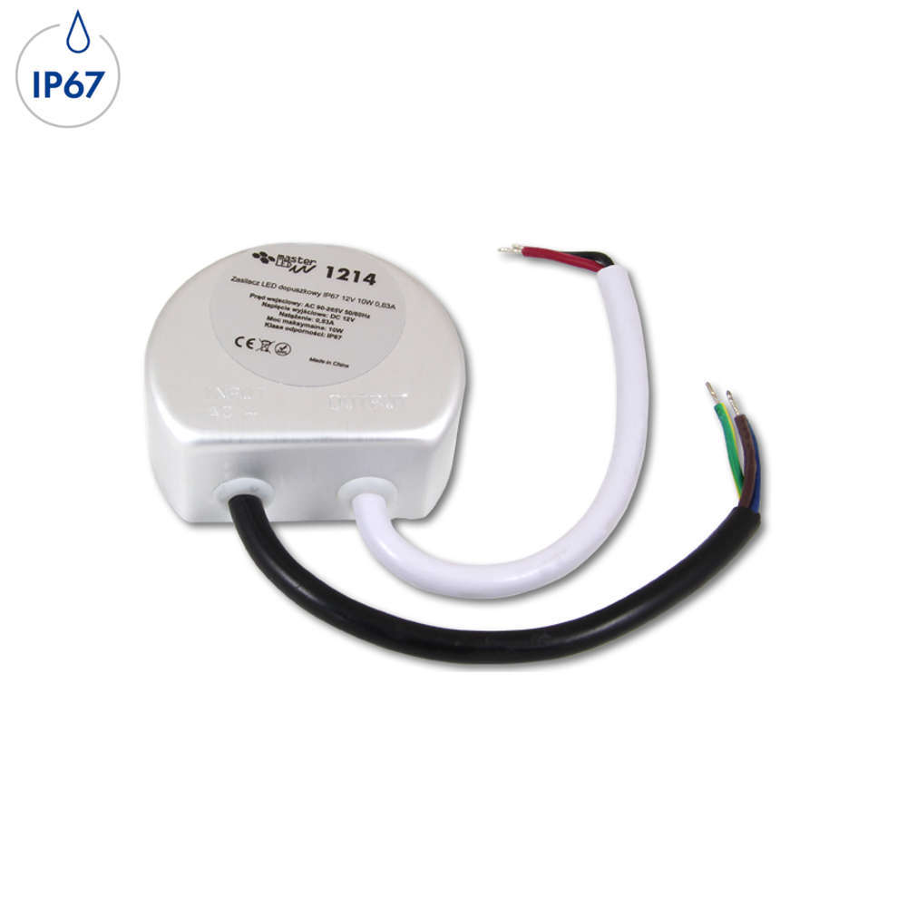 Led драйвер 10W, AC110-240V/12VDC, метал, IP67, ф58x25mm