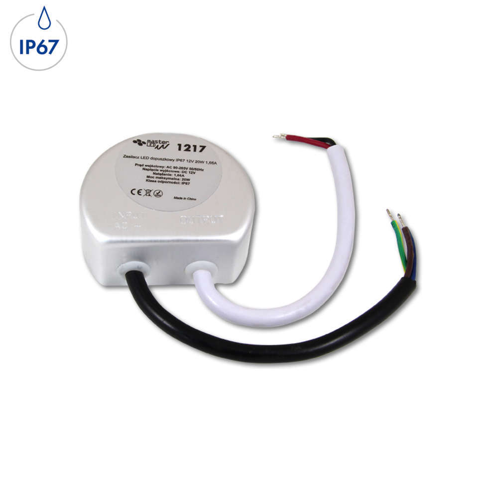 Led драйвер 20W, AC110-240V/12VDC, метал, IP67, ф58x25mm