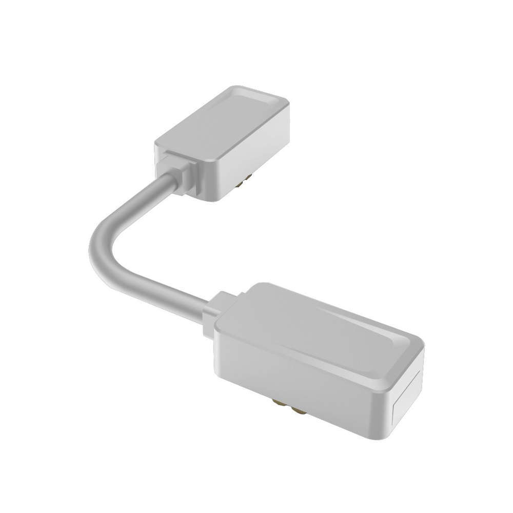 Захранващ ъглов адаптер 48V с бял кабел LVT Luxo 0504 - гъвкав адаптер с работно напрежение 48V. Предназначен за захранване на 2 магнитни шини за вграждане монтирани под ъгъл.